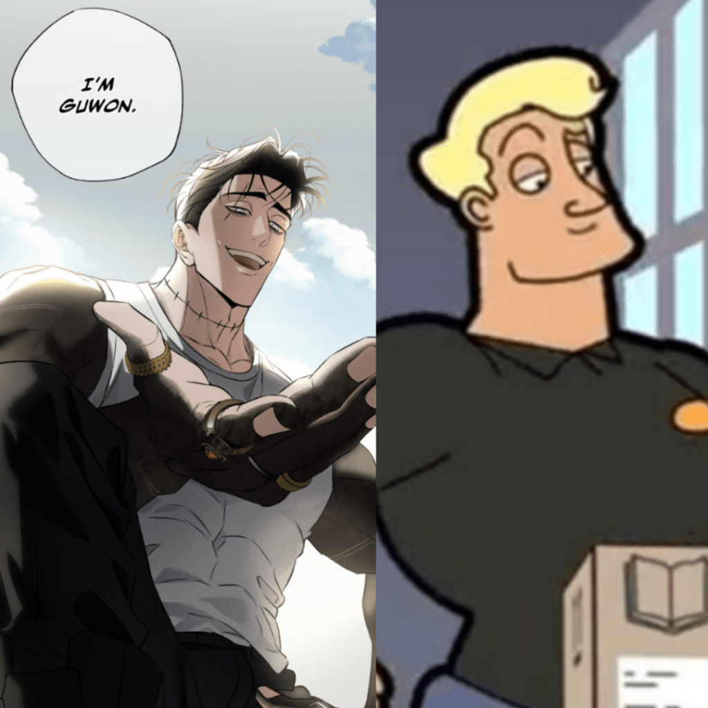 Please don’t take this the wrong way but Pyo Guwon makes faces only a Mr Bean Animated Series sexyman would. I see Pyo Guwon with his wide smile and half-lidded eyes and think, “there’s a man who tinkles his fingers and says ‘don’t mind if I do’ when offered a biscuit”. His character design says so much that I couldn’t ever begin to consider he was meant to be even a little bit sexy. Very fun to look at, though.